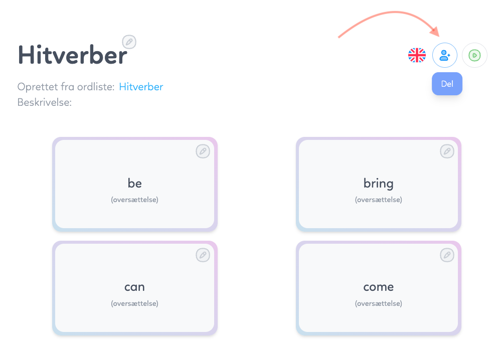 3. Del dine flashcards: Du kan nu dele dine flashcards med dine elever.